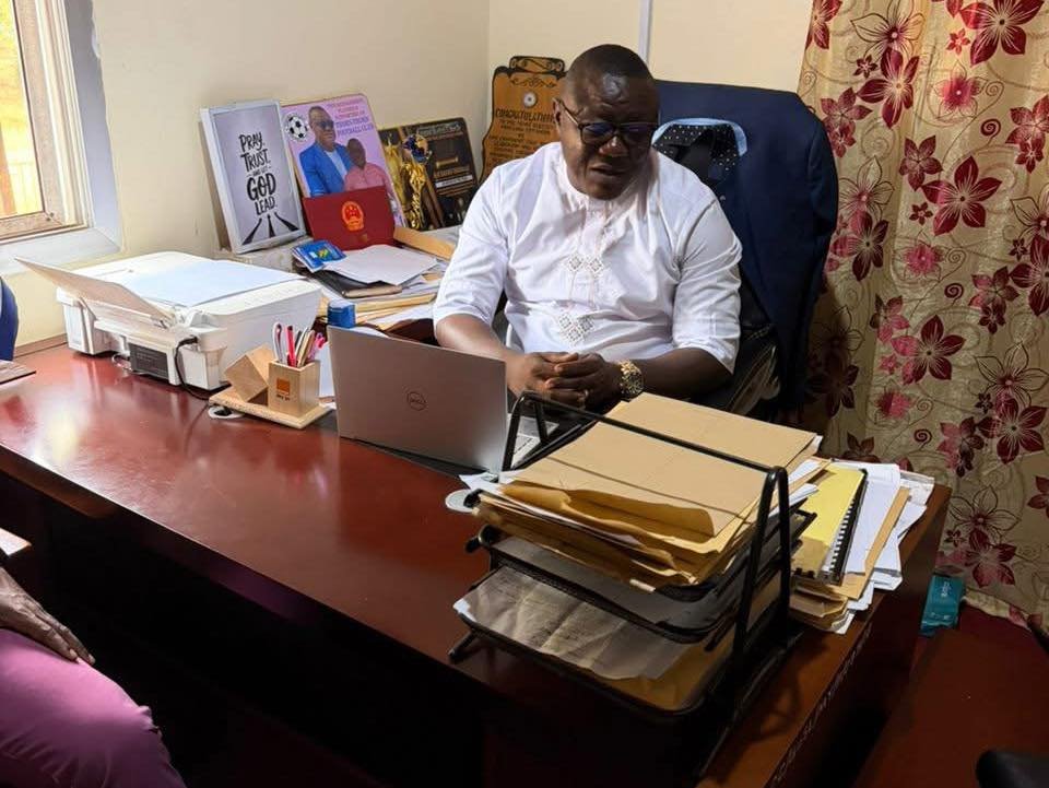 En route pour Kalangba, le président Sualley a fait un bref arrêt à Portloko, où il a rendu une visite de courtoisie au vice-président de l’association de football de la Sierra Leone et maire du conseil municipal de Portloko, Alie Badara Tarawally. Au cours de l’engagement, le Président a informé Son Honneur des progrès réalisés à ce jour et a présenté les plans visant à mobiliser la communauté et les principales parties prenantes pour la cérémonie à venir, en sollicitant ses conseils et son soutien à son leadership.